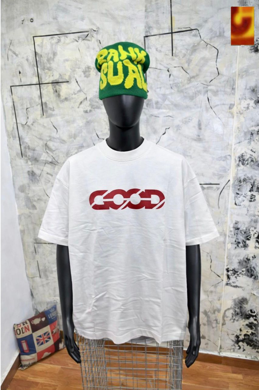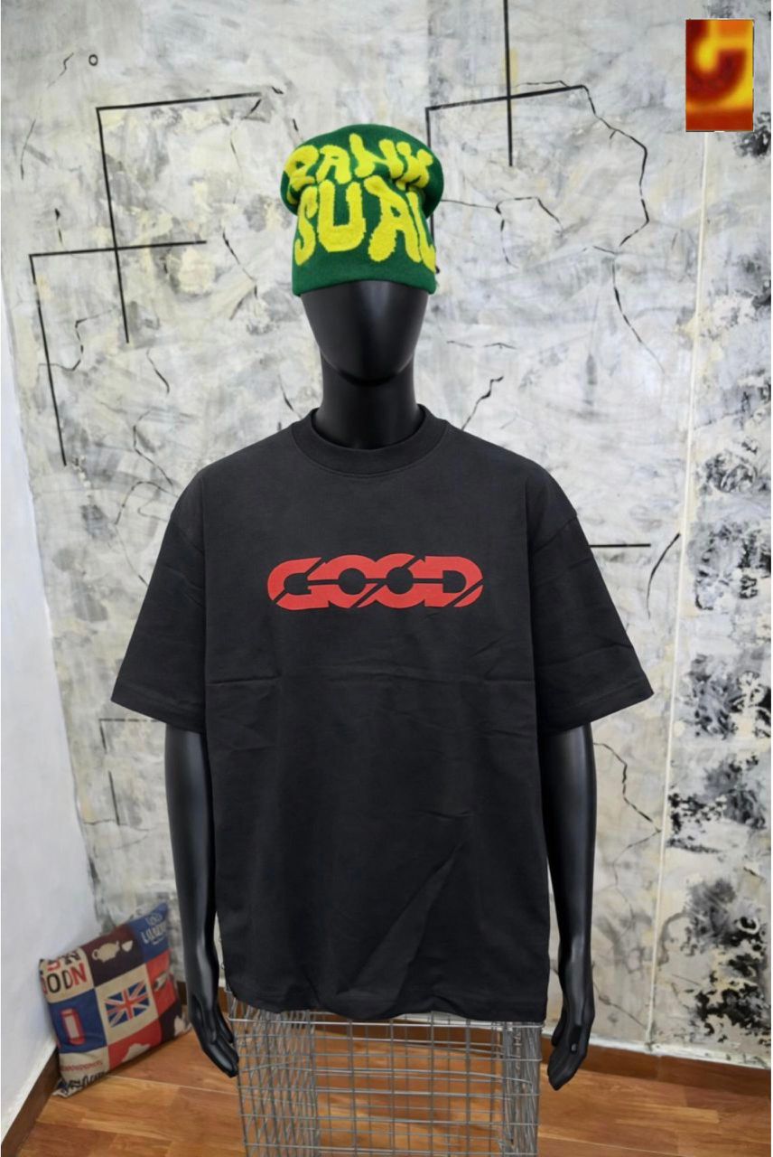 Step into bold style with the “GOOD” Chain-Link Graphic Tee – Black Streetwear Edition, a must-have for fashion-forward individuals who love expressive urban wear. This black t-shirt showcases a striking red graphic that spells out “GOOD” using stylized chain links, delivering a powerful visual statement that blends grit with positivity.