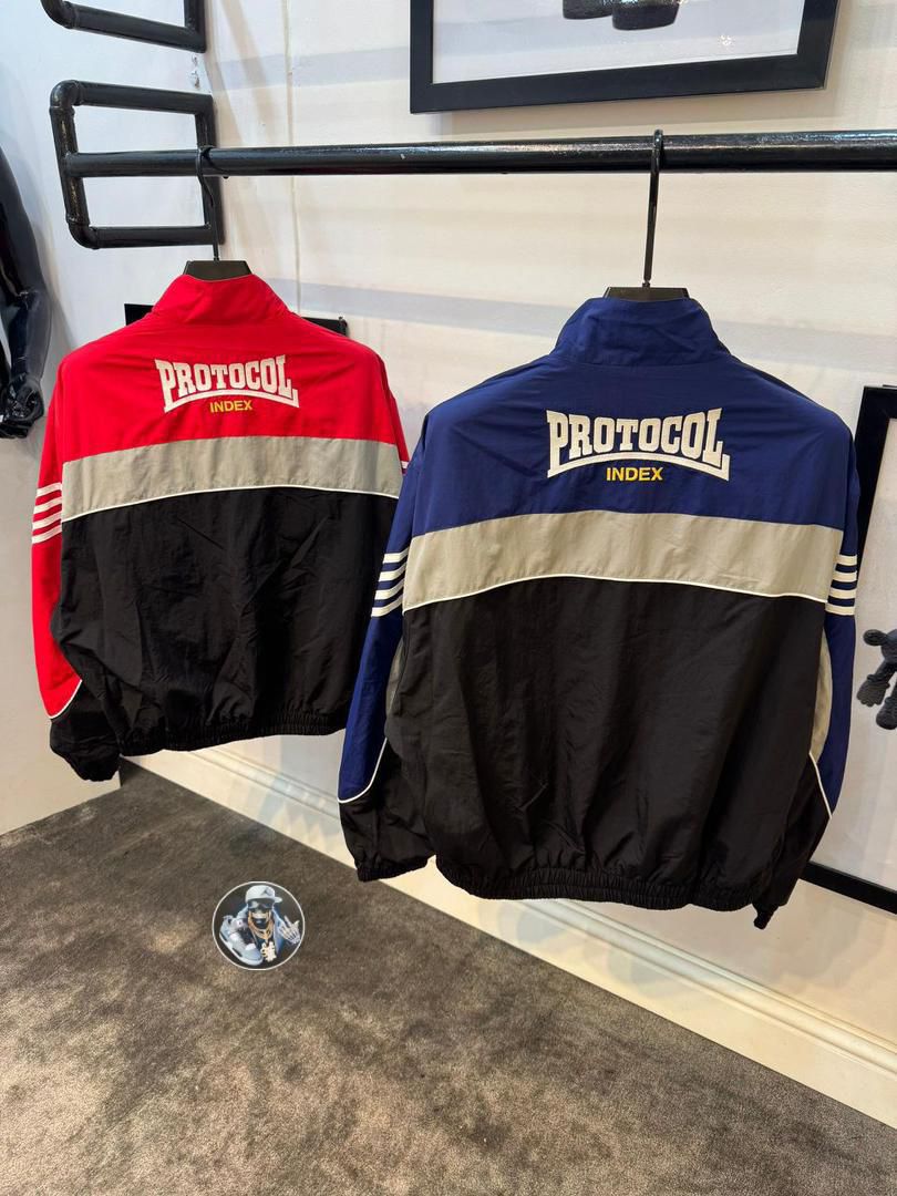 Elevate your wardrobe with the Protocol Index Windbreakers, available in bold red and sleek blue options. Crafted for comfort and durability, these windbreakers boast a modern design with contrasting color blocks, white stripes, and the prominent Protocol Index branding. Ideal for everyday wear, they offer a perfect blend of style and functionality. Tags: Protocol Index, windbreaker, jacket, casual wear, mens fashion, outdoor apparel, Hr7 Mega Store.